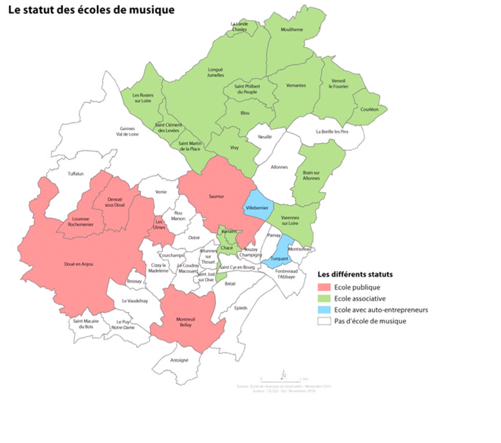• Carte des écoles de Musique de la Communauté d'Agglomération de Saumur